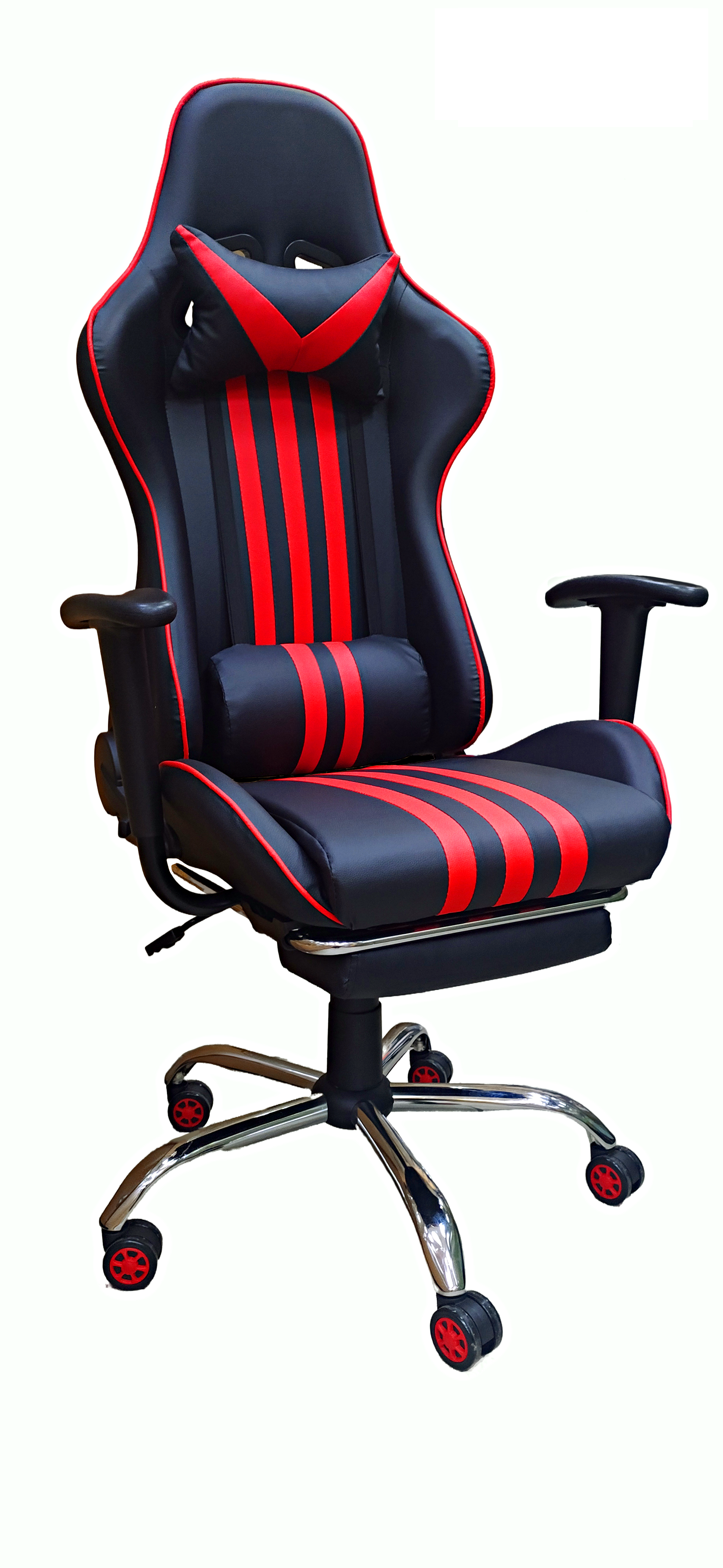 Игровое компьютерное кресло с подставкой для ног, черно-красный, хромированное основание