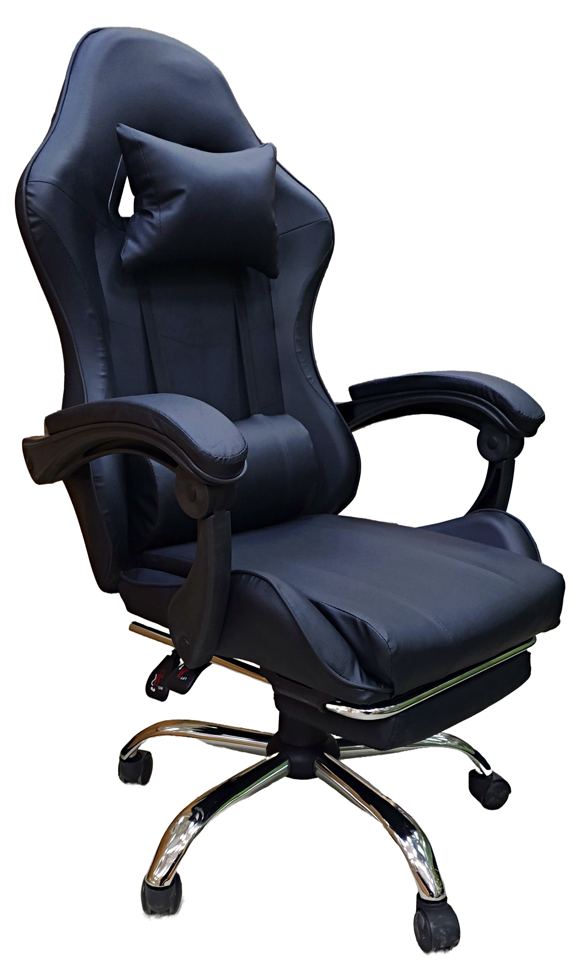 Игровое компьютерное кресло с подставкой для ног, черный, хромированное основание