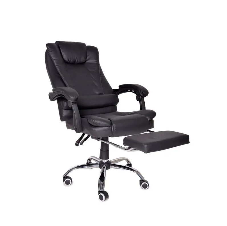 Кресло для офиса ZX-333 с подставкой для ног, черное, хромированное пятилучье, раскладывается