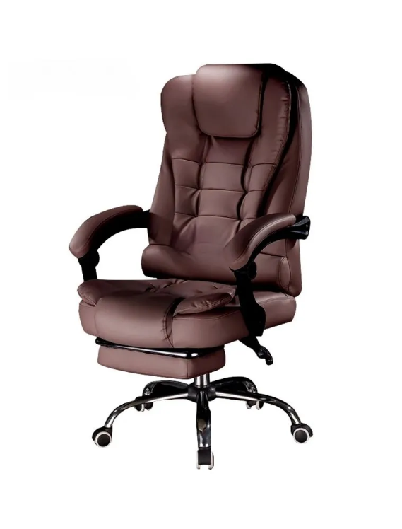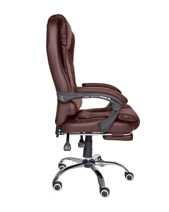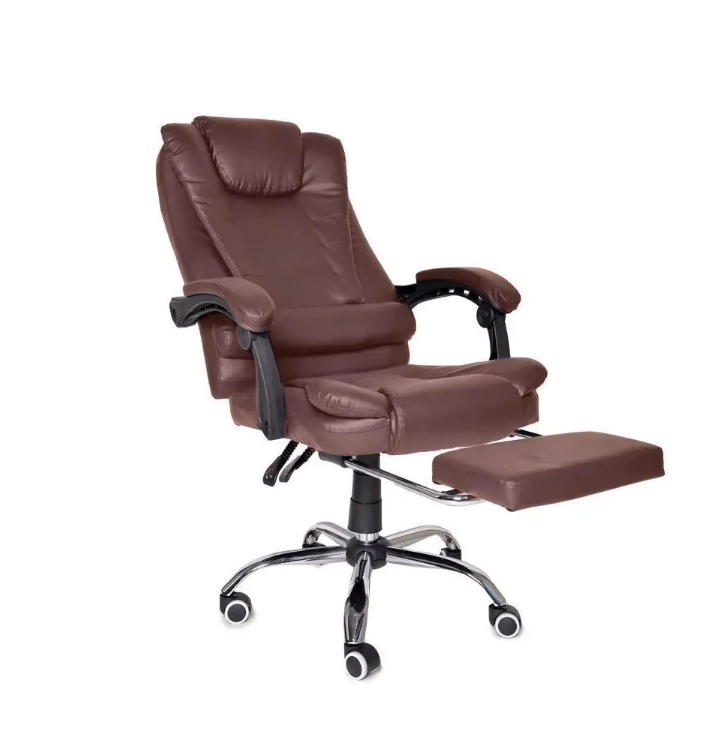 Кресло для офиса ZX-333 с подставкой для ног, коричневый, хромированное пятилучье, раскладывается