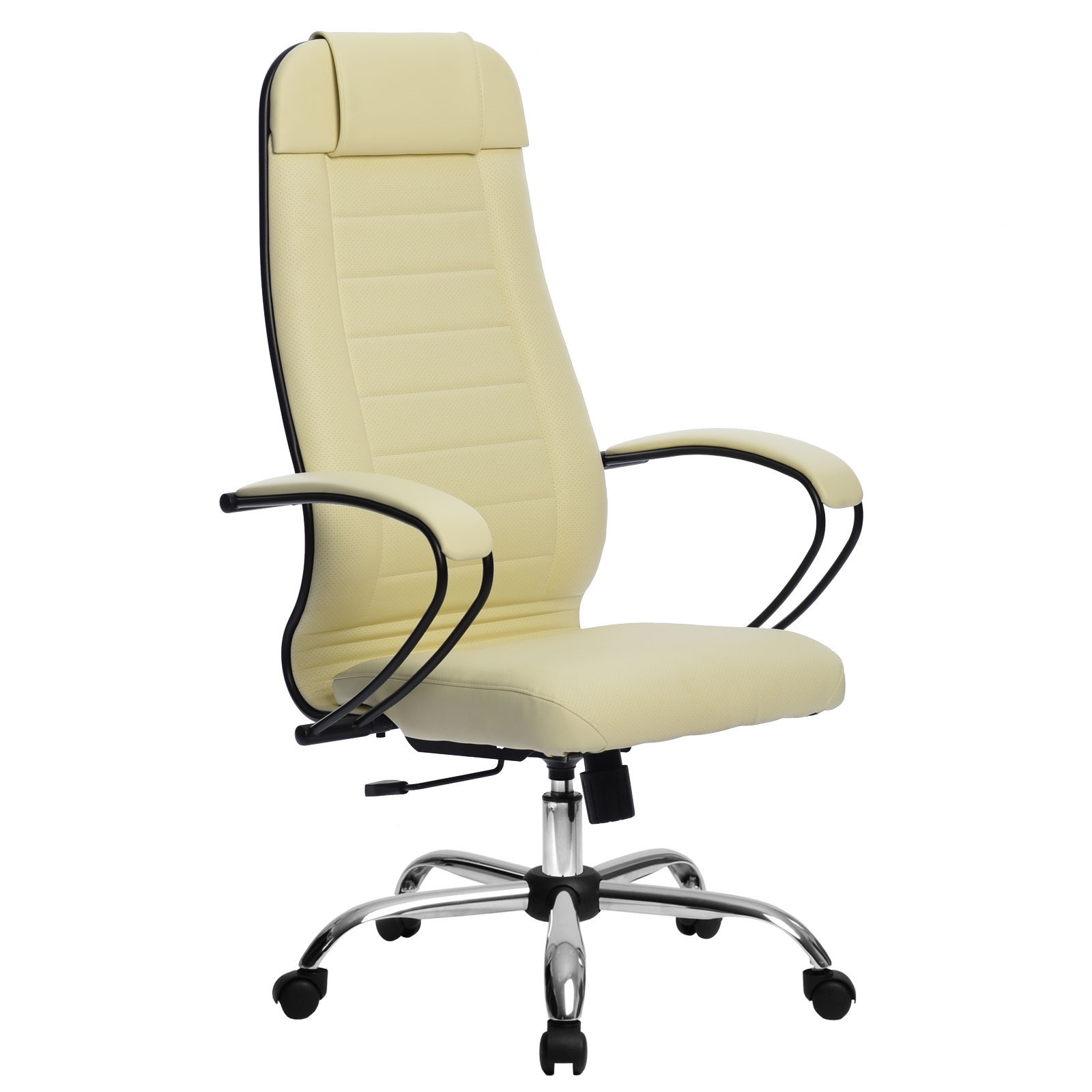Кресло офисное Комплект 28 бежевая кожа, хром до 120 кг.