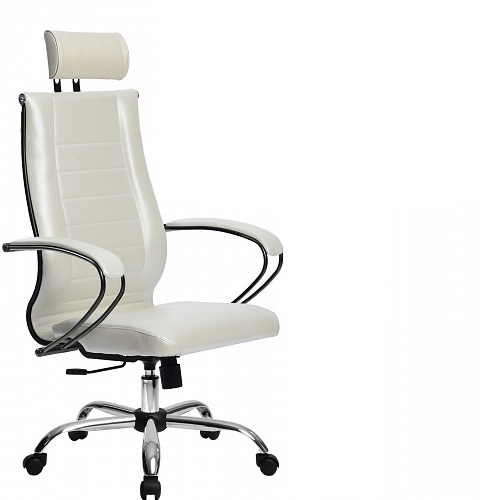Кресло офисное МЕТТА комплект 32 кожа (белый MPES) NewLeather, хром пятилучье до 120 кг.
