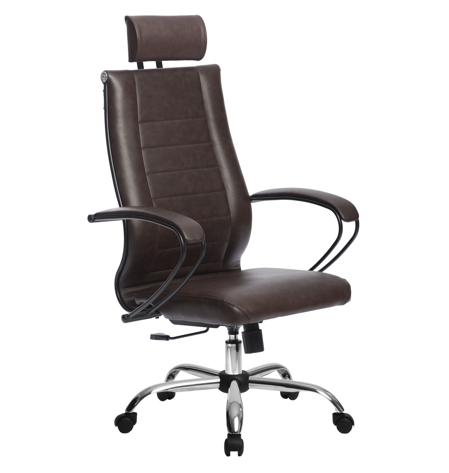 Кресло офисное МЕТТА комплект 32 темно-коричневая кожа NewLeather, хром до 120 кг